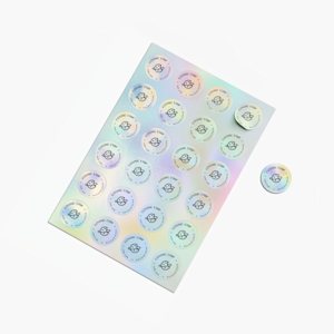 Unsere Hologramm-Aufkleber auf Bögen bestehen aus metallisiertem Polypropylen (ein strapazierfähiger Kunststoff) und schillern wunderbar im Licht. Bei uns finden Sie nicht nur 6 Größen und 3 Standardformen, sondern Sie können auch Aufkleber in Wunschform erstellen. Die Mindestbestellmenge beträgt nur einen Bogen, sodass Sie sich von Ihrem Design persönlich überzeugen können, bevor Sie eine größere Menge nachbestellen.