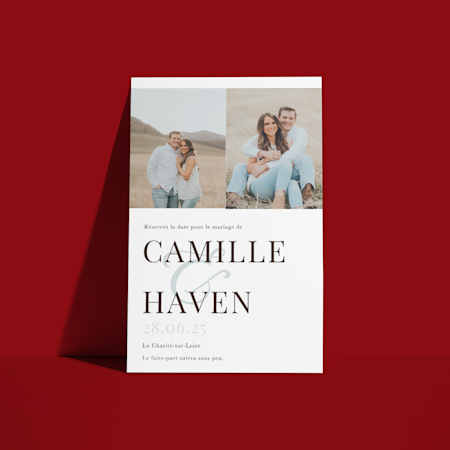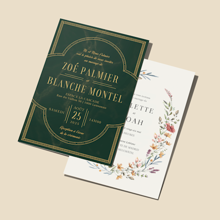 C’est très simple. Pour commencer, sélectionnez le type de carte dont vous avez besoin (cartes de vœux, cartes save the date...) pour découvrir notre large choix de modèles de cartes personnalisables. Vous pouvez explorer les modèles en les filtrant par couleur, style, thème et plus encore.