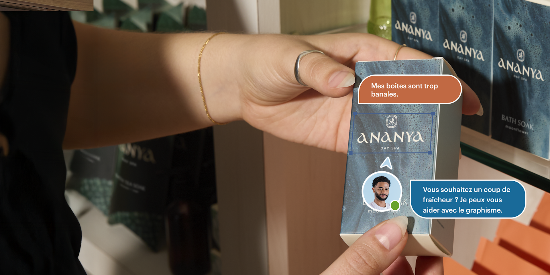 Après avoir trouvé la (ou les) boîte en carton qui vous plaît, personnalisez-la en ajoutant votre logo, des informations sur votre entreprise ou du texte pour créer un graphisme unique. Besoin d’aide avec votre création ? Pas de panique : nos graphistes professionnels sont là pour vous accompagner.