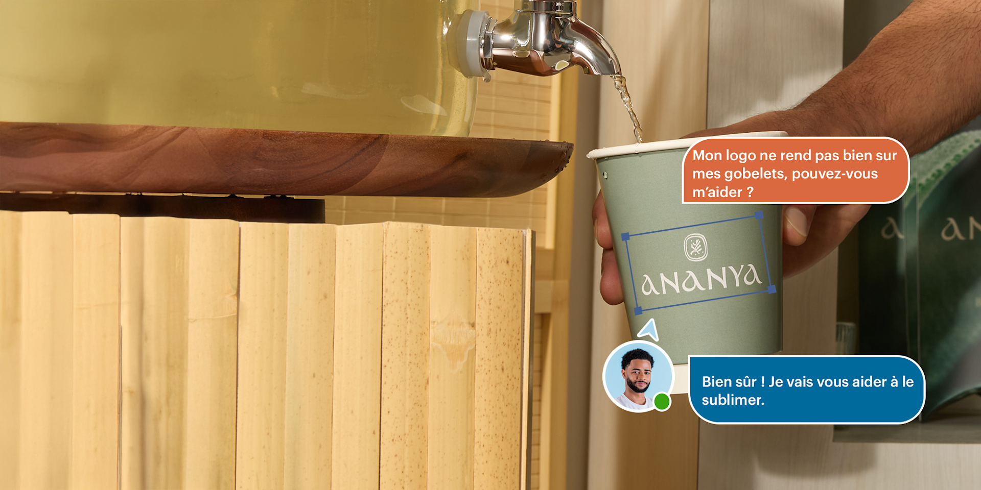 Tous nos gobelets personnalisés arborent une impression à 360° pour que votre graphisme soit toujours visible. La solution parfaite pour une visibilité optimale. Besoin d’un coup de main ? Que ce soit lors du processus de création ou si vous voulez en savoir plus sur les matériaux utilisés, notre service client est à votre disposition 24 heures sur 24, 7 jours sur 7.