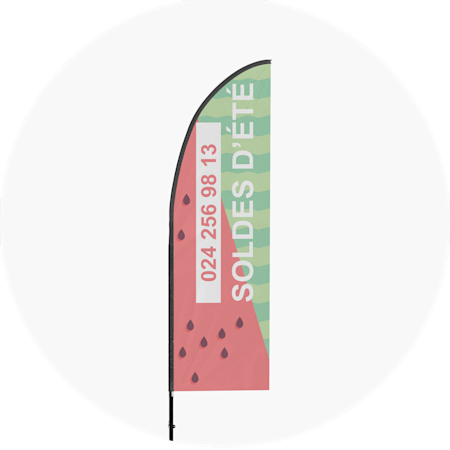 Par exemple, nos bâches microperforées sont fabriquées en polyester coupe-vent, résistant à l’eau et aux rayons UV. Adaptées aux conditions venteuses, elles s’accrochent facilement sur une clôture. Nos stop-trottoirs base eau restent en place et résistent au vent jusqu’à 140 km/h. Nos x-banners extérieurs, quant à eux, présentent une base lestée et des toiles opaques résistant aussi bien à la pluie qu’aux rayons UV. Nous proposons également des drapeaux classiques et drapeaux aile en polyester robuste, conçus pour flotter au vent et résister jusqu’à 65 km/h ou plus, en fonction du modèle.