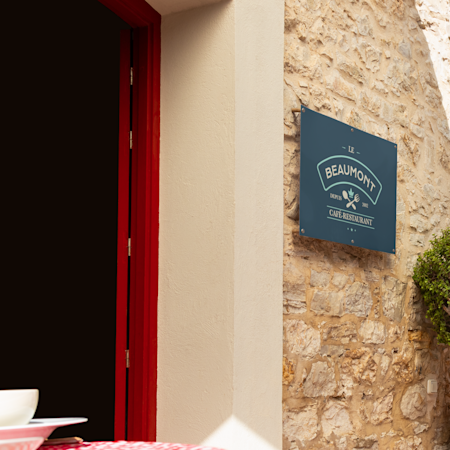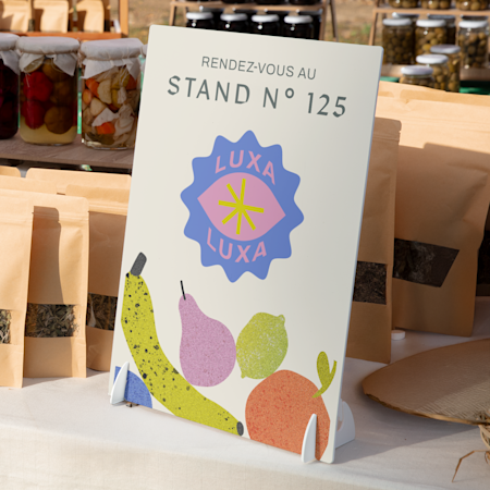 Notre signalétique extérieure est composée de matériaux résistants au vent et aux intempéries pour attirer l’attention sur un food truck, une terrasse de restaurant, un marché, un parking et bien plus encore. Le tout quelle que soit la météo. Il suffit de choisir un produit d’extérieur et un modèle qui vous plaît, puis de le personnaliser en important votre propre graphisme ou en en choisissant un dans notre galerie. Notre équipe de graphistes et notre service client se feront une joie de vous donner un coup de main en cas de besoin. Votre produit sera imprimé en couleur avec le plus grand soin et livré dans les meilleurs délais afin que vous puissiez communiquer sans attendre.