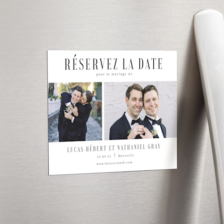 C’est à vous de voir ! Les cartes « save the date » peuvent parfois servir à la fois d’annonce et de faire-part. Tout dépend du format et de la formulation que vous utilisez. Généralement, les cartes « save the date » servent simplement à informer les invités que vous vous mariez, afin qu’ils puissent réserver la date. Cependant, certains couples choisissent de concevoir leurs cartes « save the date » de façon à ce qu’elles remplissent aussi la fonction de faire-part, en fournissant des détails plus pratiques sur le jour J, tels que les options d'hébergement et de transport. Cette approche peut être envisageable pour un mariage plus informel ou intime, où des faire-part séparés ne sont pas forcément nécessaires.