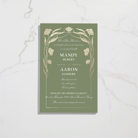 Pour commencer, parcourez nos faire-part de mariage. Choisissez un modèle et personnalisez-le avec la date de votre grand jour, le lieu de réception, les informations sur le déroulement de la journée et plus encore. Vous pouvez ensuite décliner ce graphisme sur l’ensemble de votre papeterie de mariage, jusqu’aux cartes de réponse et aux cartons d’accompagnement. Notre équipe se tient à votre disposition si un modèle vous plaît particulièrement : nous préparerons pour vous tous les articles assortis qui composeront votre collection de papeterie de mariage. Vous préférez quelque chose de plus éclectique ? N’hésitez pas à combiner différents styles de papeterie pour créer un assortiment original et contemporain !