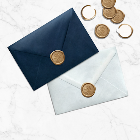Une fois votre ensemble créé, vous pourrez choisir parmi notre large gamme de papiers de qualité : mat, glacé, lin et plus encore. Parce que votre grand jour mérite l’excellence, nous prenons soin de sélectionner des matériaux et papiers de qualité supérieure qui feront forte impression. Vous devrez ensuite faire parvenir tout cela à vos invités : certains produits complémentaires, comme les étiquettes d'adresse et les tampons encreurs, rendront cette étape plus simple et agréable.