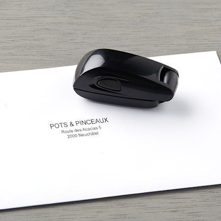 Nos tampons auto-encreurs et nos tampons de poche peuvent accueillir jusqu’à 3 lignes de texte. Vous pourrez ajouter un nom et une adresse de retour, par exemple. Si vous souhaitez ajouter un graphisme à votre tampon, nous vous recommandons d’opter pour un tampon auto-encreur. Nos tampons encreurs signature sont conçus pour accueillir une réplique de votre écriture de 57 x 21 mm.