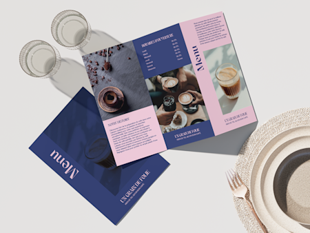 Commencez par sélectionner la taille, le type de pliage et le papier parfaits pour vos menus. Puis, importez votre graphisme ou explorez notre galerie de modèles conçus spécifiquement pour votre secteur. Faites ressortir vos menus avec des photos éclatantes, votre logo et une identité visuelle unique.