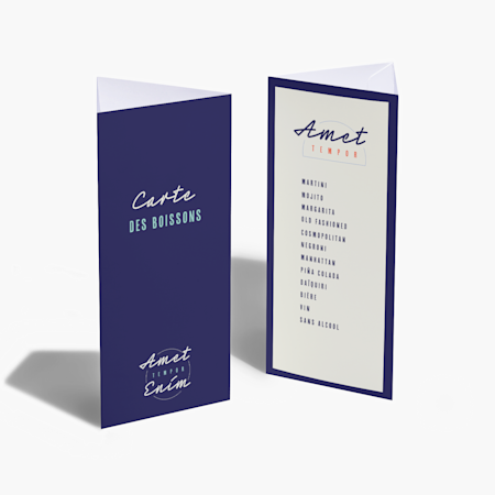 Vous pouvez choisir un menu sans pli, un dépliant à deux ou trois volets ou encore un format en accordéon, en fonction du contenu et du style de présentation souhaité. Chaque type de pliage offre des possibilités de mise en page uniques pour valoriser votre contenu.