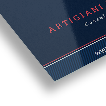 Dai un’occhiata alle nostre finiture speciali. Al momento offriamo un effetto metallico o una stampa in rilievo con vernice UV.