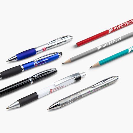 Non sai ancora quale articolo desideri? Siamo a tua disposizione! Dai un’occhiata al nostro ampio assortimento di modelli predefiniti, a cui puoi aggiungere loghi e informazioni e apportare modifiche per ottenere esattamente l’aspetto che vuoi. E se hai bisogno di una mano, i nostri esperti designer saranno sempre a tua disposizione, per aiutarti a donare un aspetto coerente a tutti i tuoi articoli di cancelleria personali o per l’ufficio.