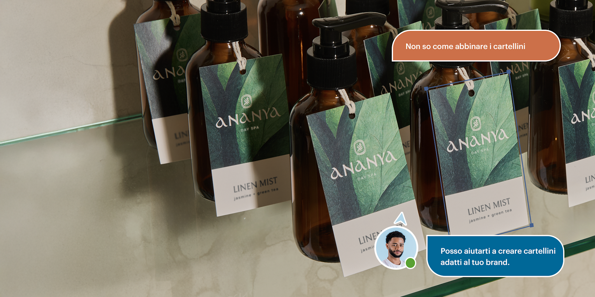 I cartellini personalizzati possono contribuire a rendere facilmente riconoscibili i tuoi prodotti e la tua attività, coinvolgendo i clienti anche su un piano emotivo. In più, sono ottimi per comunicare informazioni come prezzi, ingredienti o materiali, oltre a loghi e brand. La scelta dei cartellini più adatti dipende dai tuoi prodotti e dall’effetto che desideri ottenere. VistaPrint offre tantissime opzioni fra cui scegliere per trovare quella più adatta alle tue esigenze. I cartellini pieghevoli sono ottimi per aggiungere messaggi o informazioni ad un prodotto, includendo al contempo il tuo logo e trasmettendo un’immagine curata. Lo stesso vale per i cartellini con rilievo metallico, che presentano un aspetto lussuoso e sofisticato. I nostri cartellini sono disponibili in un ampio assortimento di materiali, da quelli tradizionali ad altri dal sapore più artigianale.
