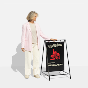 Attira l’attenzione sia al chiuso che all’aperto con i nostri eleganti cavalletti a lavagna oscillanti.
