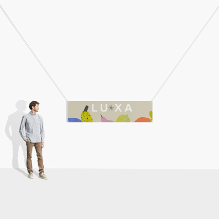 - 25 x 50 cm, uno striscione piccolo da tavolo o per apporre avvisi in piccole vetrine.