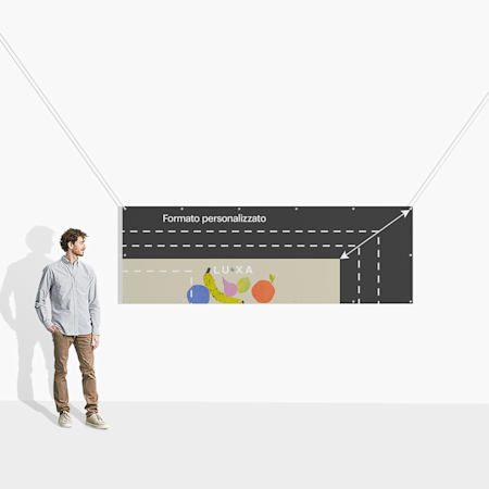 Per iniziare, scegli l’opzione più adatta alle tue esigenze fra i nostri striscioni in vinile, estremamente versatili, quelli senza PVC, facilmente riciclabili ma non per questo meno resistenti, quelli in tessuto, perfetti per luoghi ed eventi al chiuso come feste, ristoranti e non solo, I nostri striscioni microforati, invece, sono la scelta ideale per i luoghi aperti, dai siti edili agli eventi sportivi, mentre i nostri striscioni per transenne ti aiutano a trasformare le classiche transenne in cartelloni pubblicitari accattivanti. E se ti serve aiuto in qualsiasi fase del processo, il nostro team di esperti è qui per darti consigli e informazioni utili. Bene, iniziamo a creare.