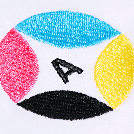 • Stickerei: Ihr Design wird mit farbigem Garn auf das Material gestickt.